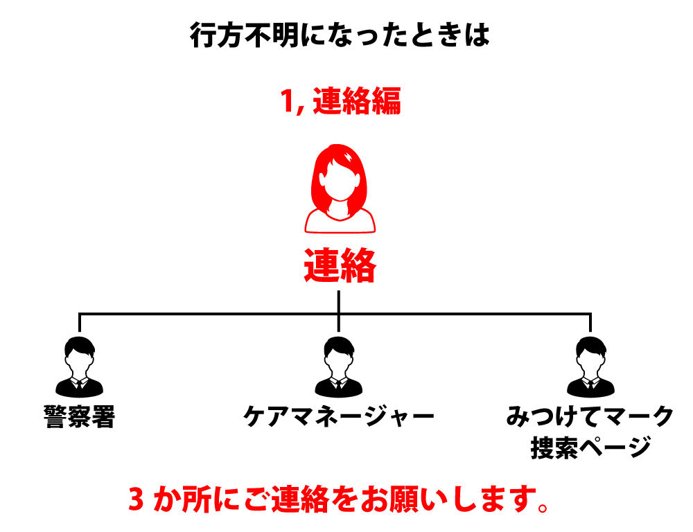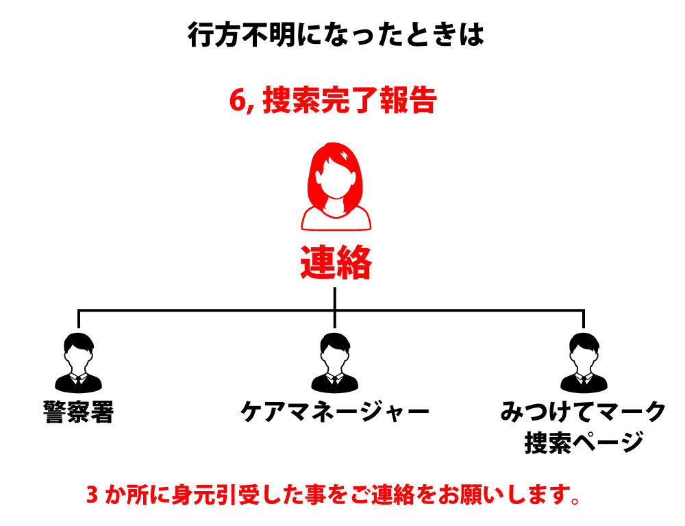 そのうち事件受理当日に73.4%の方が発見されており、2~7日以内に26%の方が発見されおりますが発見しても、重度の認知症の方になるに連れ自身の名前や住所・年齢など伝えれない事や、長距離移動となってしまった場合、捜索範囲が最寄りの警察署管轄外になり捜索が困難になる事から発見確率がグンと下がります。