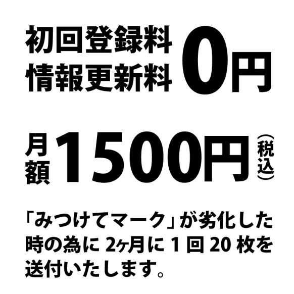 必要になった場合追加のご連絡を頂きた次第「みつけてマーク」1度に20枚を郵送いたします。